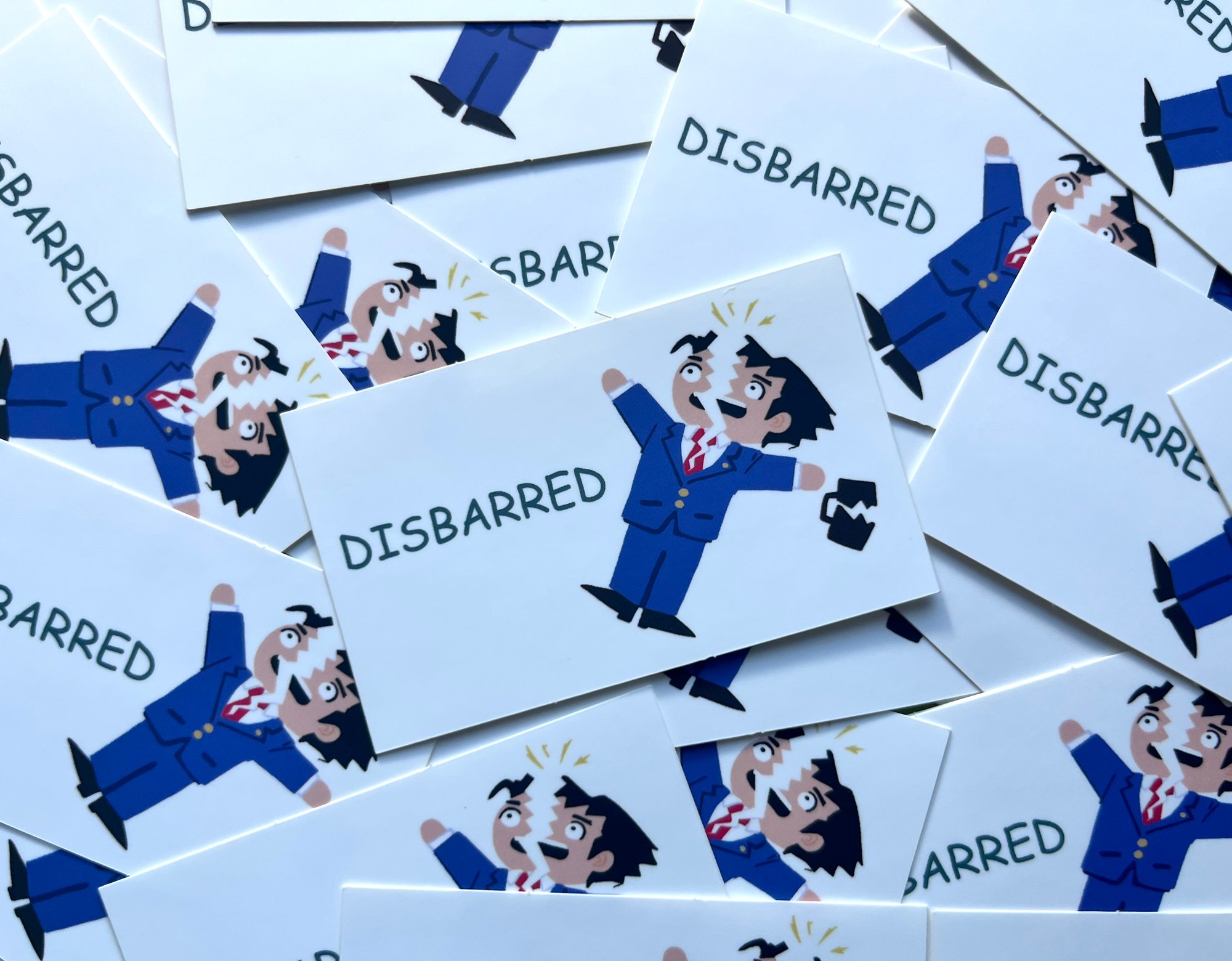 Ace Attorney stickers based on those MS Office Sharks. Stickers are vinyl, matte, and measure approx 3" across.