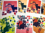 Pack of 3 ~5.5x7.5" prints showing risograph color mixing. Each come with the three color print, and two two color variations. Available in two varieties: