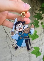 Charm measures approx 3" tall and is double side printed on clear acrylic. Comes with a gold star clasp.