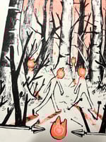 Print measures 8.5x11" and is two color risograph printed in fluorescent orange and black on 32lb milkweed paper.