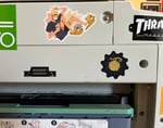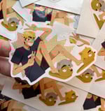 Glossy sticker of Atsumu wearing those weird Miya Bros fox slippers. Each sticker measures ~3.5" long.