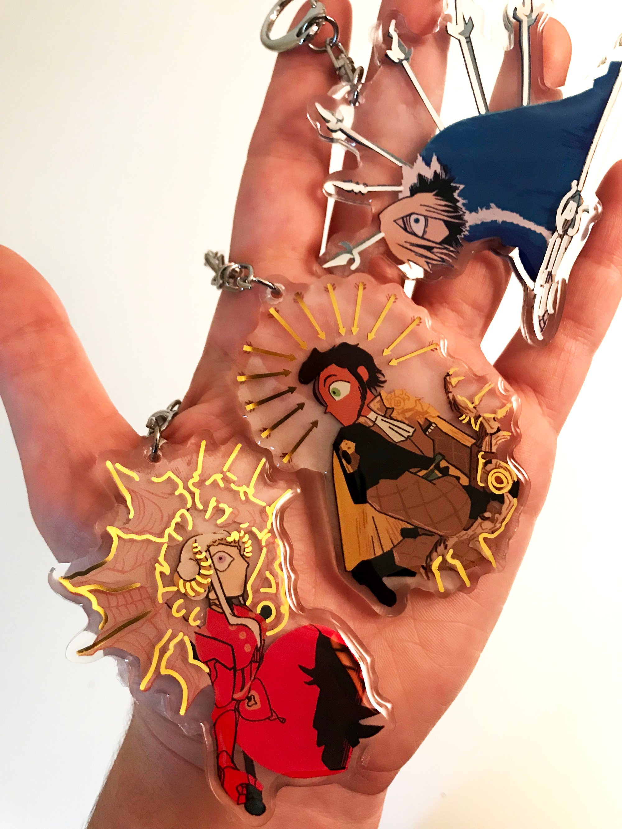 Each charm measures approx 3" tall and is double side printed on clear acrylic with foil embellishments. Each comes with a lobster clasp.
