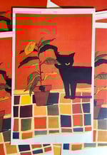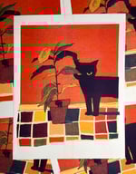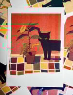Risograph print of my cat! She's printed in sunflower, crimson, and blue inks. Available in three sizes: ~5.5x7.5", 8.5x11", and 8.5x14.