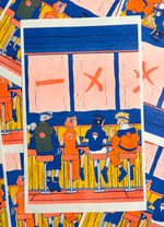 Return of an old favorite! Now printed in sunflower, fluorescent orange, and blue (previous editions were printed in fluorescent pink, orange, and blue). Small print measures ~5.25x8.5", large print measures 8.5x14".