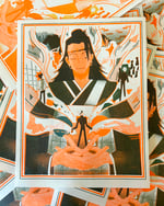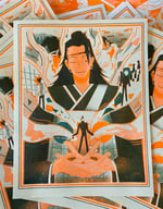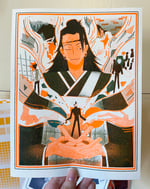 Print measures 8.5x11" and is three color risograph printed in sunflower, fluorescent orange, and teal. Available on both cream (image 1) and off-white (image 2-3) speckletone paper.