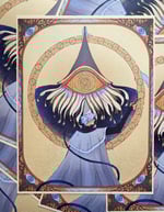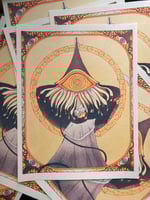 Print of Qifrey from Witch Hat Atelier. Print measures 8.5x11" and is available as both a three color risograph print in sunflower, fluorescent orange, and teal on cream speckletone paper or as a digital print on 100lb recycled stock.