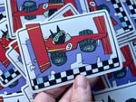 Sticker of a racecar cat. The back is transparent! measures approx 4".