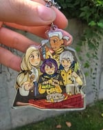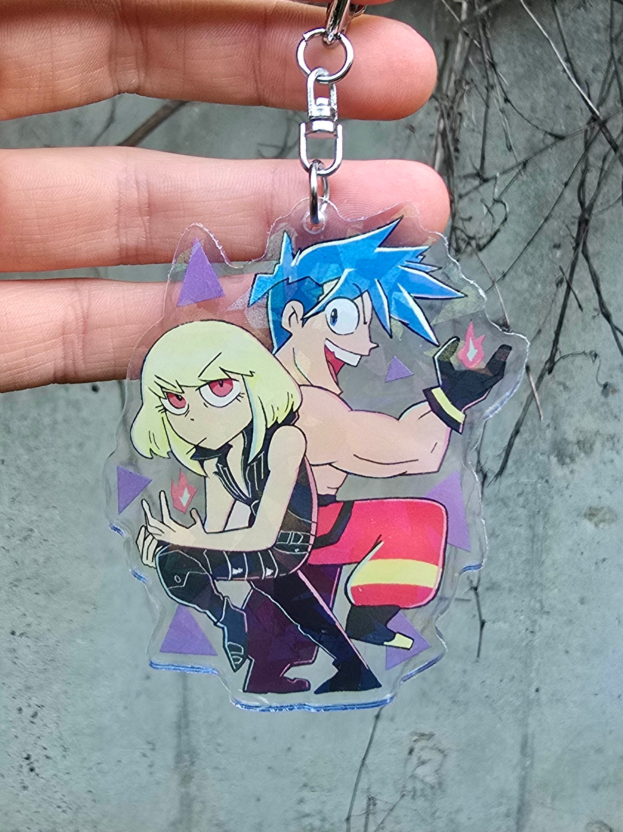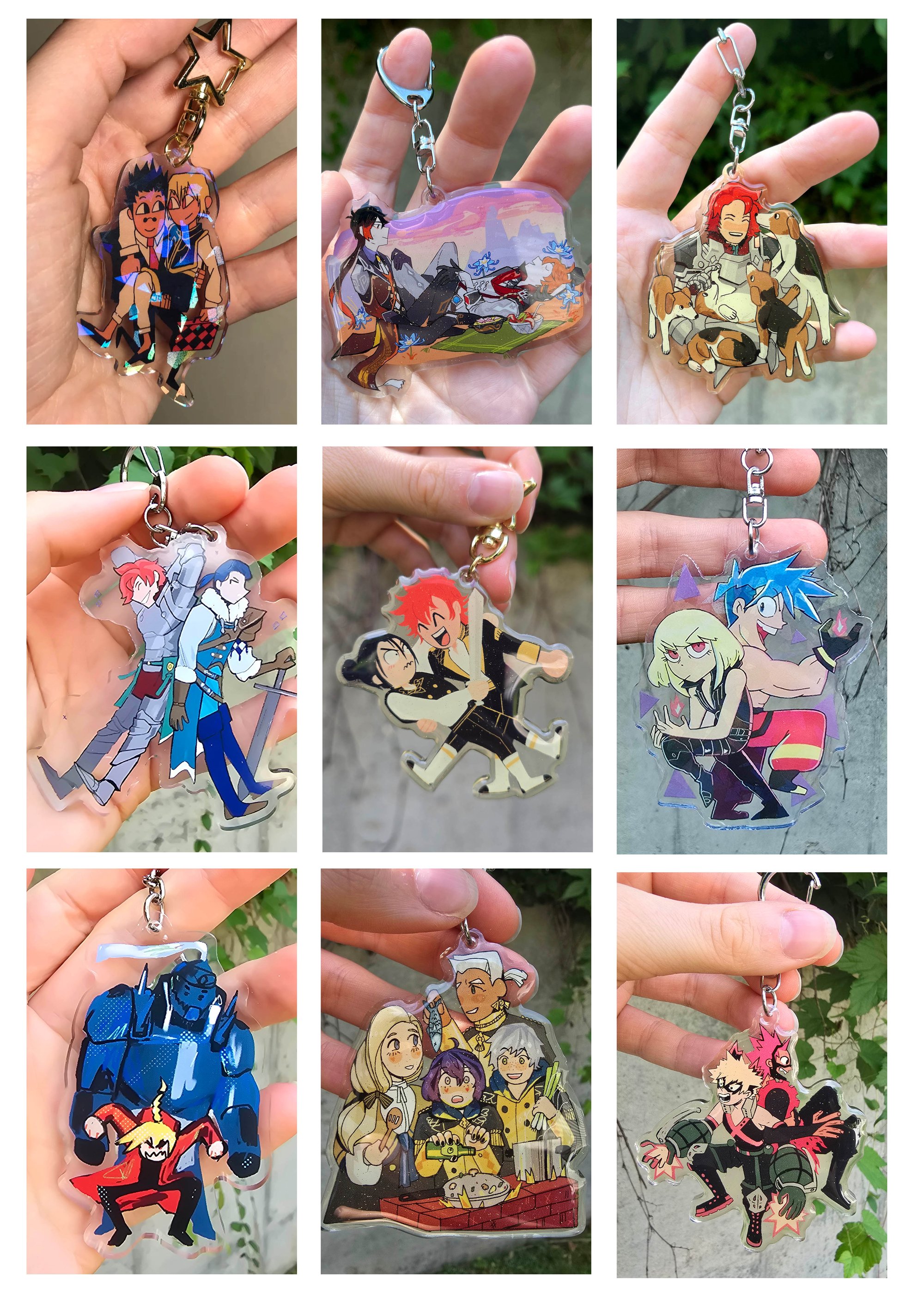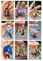 Charms measure approx 3". Zhongchi, Kiribaku, Chef FE3H and Sylvix Dance are double side printed on glitter epoxy. Timeskip Sylvix and FMA are doubleside printed on clear acrylic.