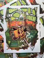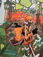Print is 4 color risograph printed in lime, fluorescent orange, teal and black on 8.5x11" paper. Available on off-white 70lb text weight stock.